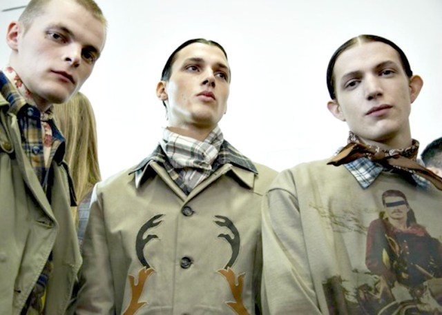 Antonio Marras porta in passerella il West dei cowboys, ma in versione mediterranea. La Sardegna e più precisamente San Salvatore di Sinis con la sua piazza desolata e le case fatiscenti tutte intorno fanno da sfondo alla collezione, i pochi abitanti del posto vestono colori della terra, del muschio insieme a militare, tortora, marrone, fango, corda, petrolio, grigio piombo e antracite e poi rosso e senape. Ruvidi tweed e giacconi a quadroni coperta si sovrappongono a maglioncioni mélange decorati, pantaloni in tartan e camicie a micro quadretti in puro stile western che sposa il rock dei giubbini biker in pelle o in stampa pitone e jeans patch.