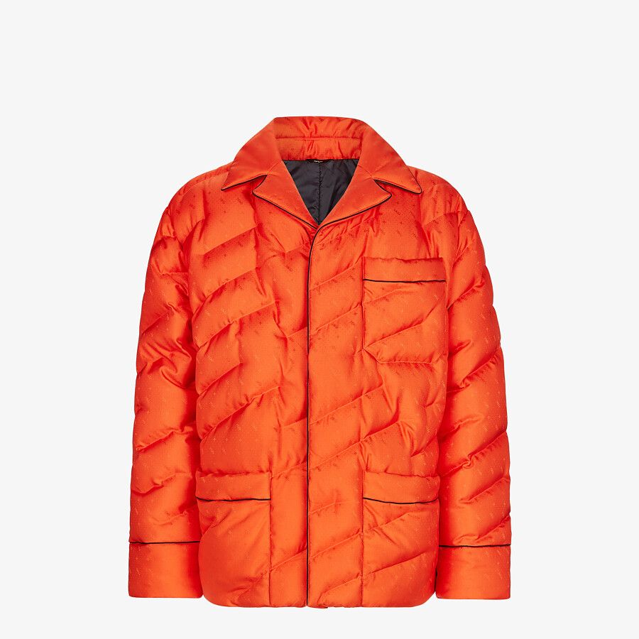 If, on the other hand, you’re thinking of the season’s must-haves, Fendi, offers a colourful reversible oversized jacket with a shirt collar, made from red silk twill, with a micro Fendi Sky print ton sur ton.