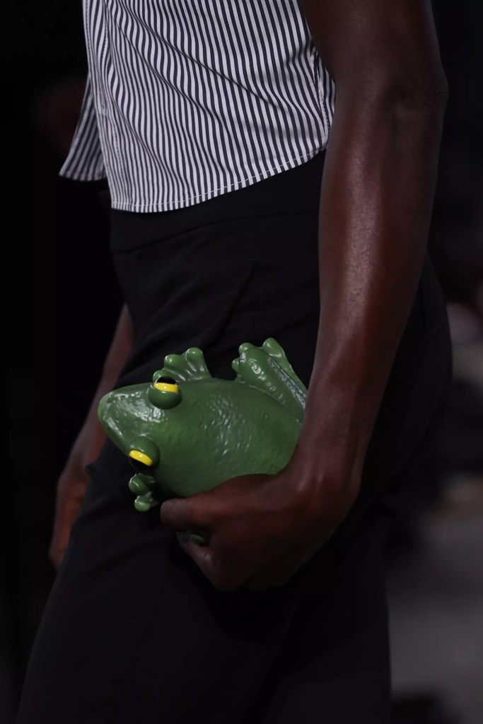 From Prada, which presents mini bags to wear around the neck and linear handbags in metallic-textured leather, to Fendi that comes with a lot of new versions of men’s Baguettes. Very interesting also the Maison Margiela‘s Snatched bags designed by John Galliano or the mini trunks seen by Louis Vuitton. Unmissable of mention, JW Anderson‘s toad-clutch, which follows the Pigeon Bag worn by Sarah Jessica Parker in Sex and the City.