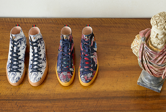 Ispirate alla tappezzeria vintage, i tessuti jacquard in stile orientale e quelli “Tempesta di mare”, raffiguranti diverse creature marine mitologiche … Continua la lettura di Gucci Donald Duck high-top trainers